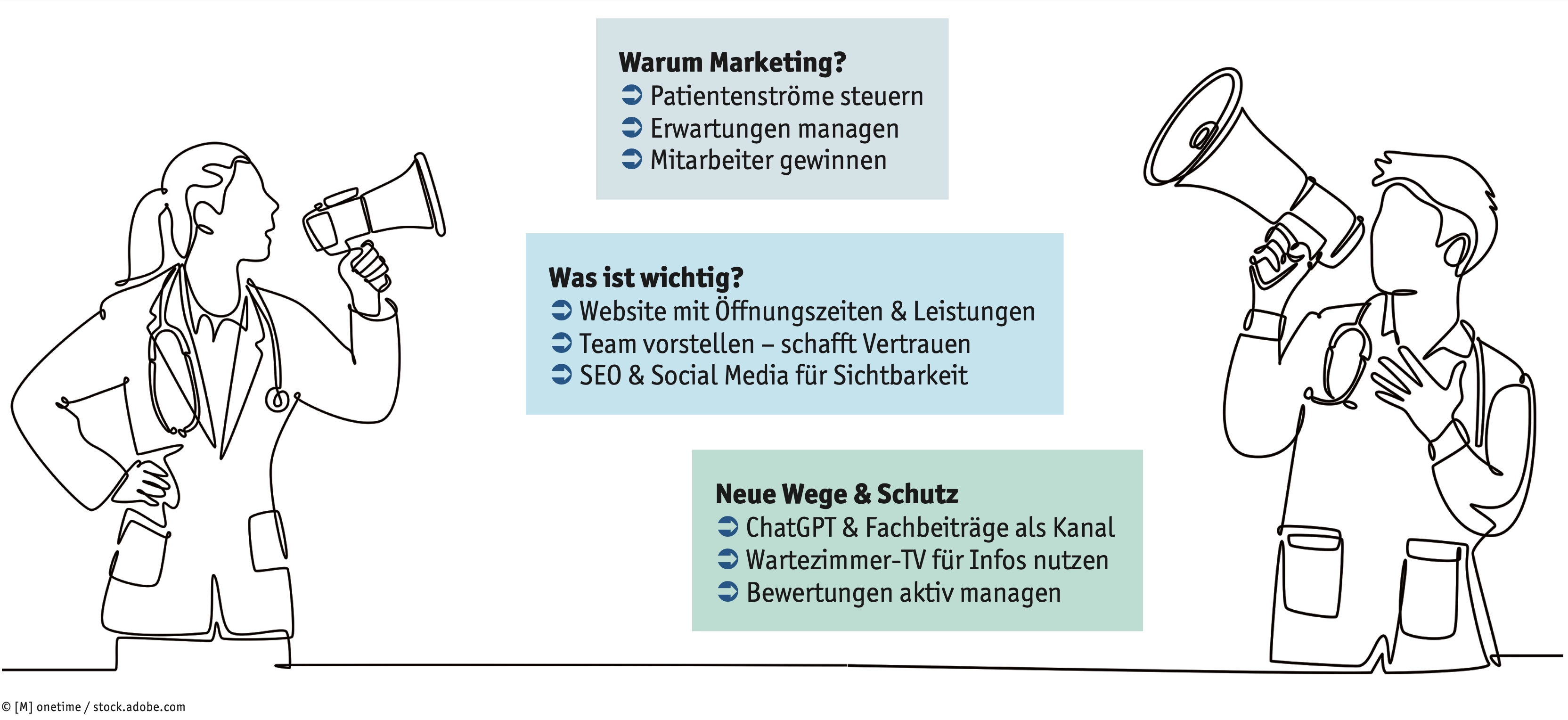 Noch wichtiger als für Kassenordinationen sei Marketing im Internet und darüber hinaus für Wahl- und Privatärzte: „Ohne Webseite, Google Maps und Bewertungen im DocFinder sind Sie unsichtbar“, warnt Wilke. Sein Ratschlag: