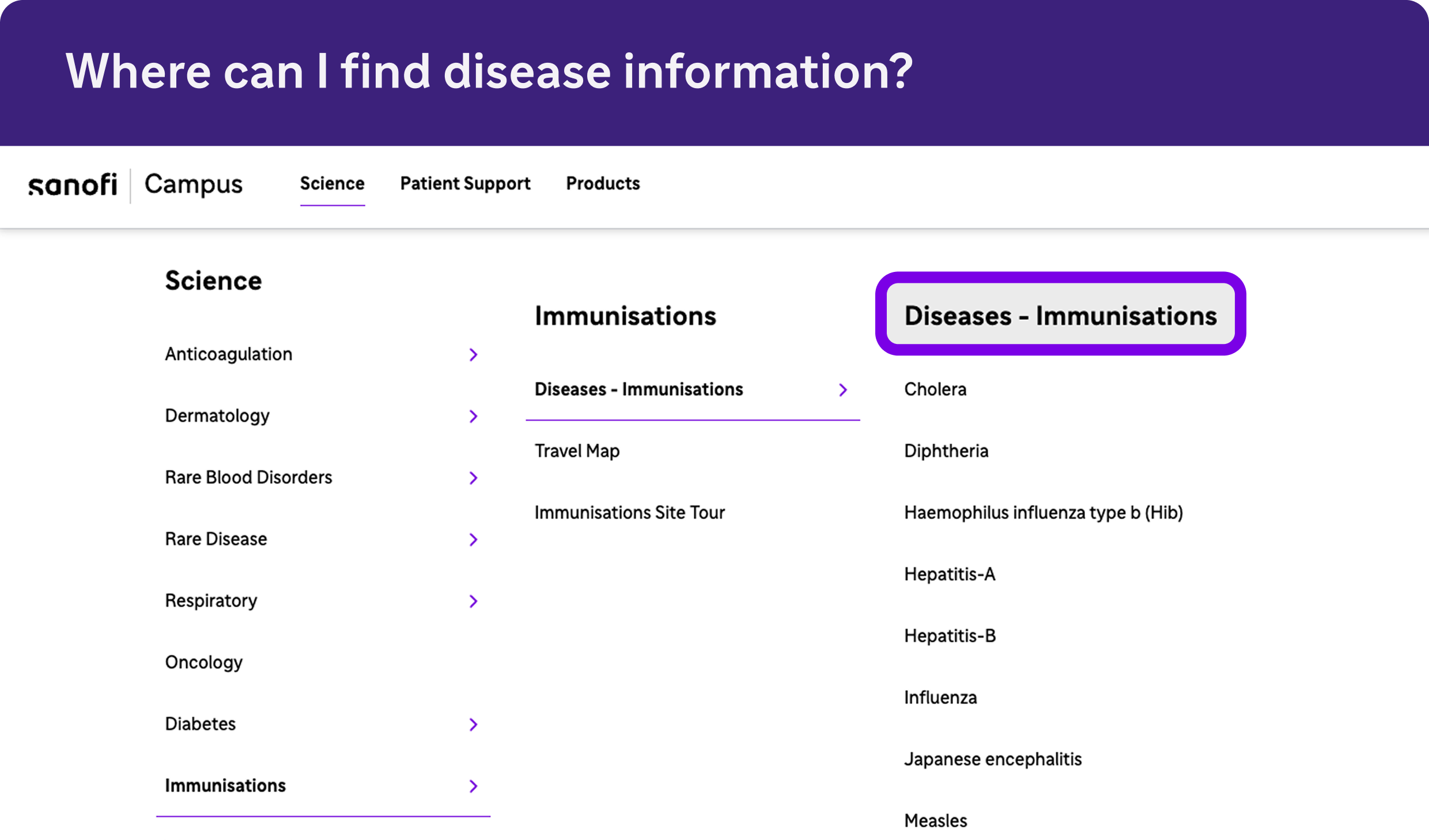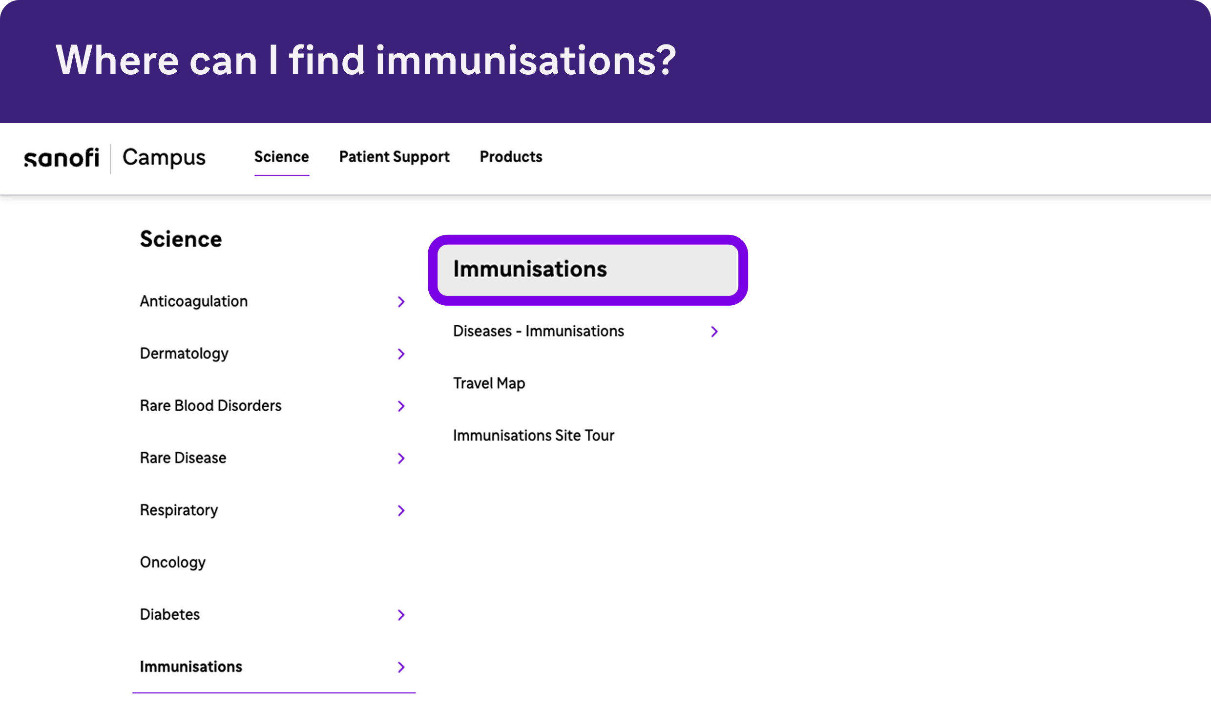 The Sanofi Campus platform makes it easy to access a wealth of resources on your therapeutic area. Please follow the guides below to understand how the immunisations content is integrated into the Campus platform.