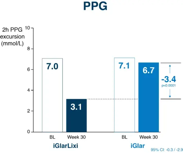 - Effect of iGlarLixi on FPG and PPG iGlarLixi combines the FPG effect of iGlar and the PPG effect of Lixi1,2