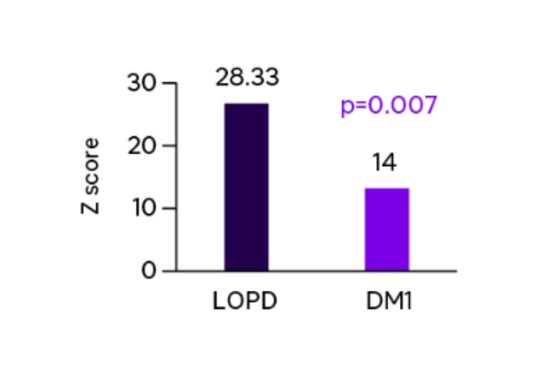 - In patients with LOPD (n=3), DM1 (n=10), and age- and gender-matched healthy subjects (n=34)