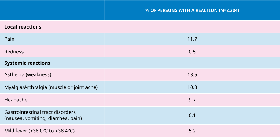 Frequency (%) of Reactions Observed After One Dose of AVAXIM®