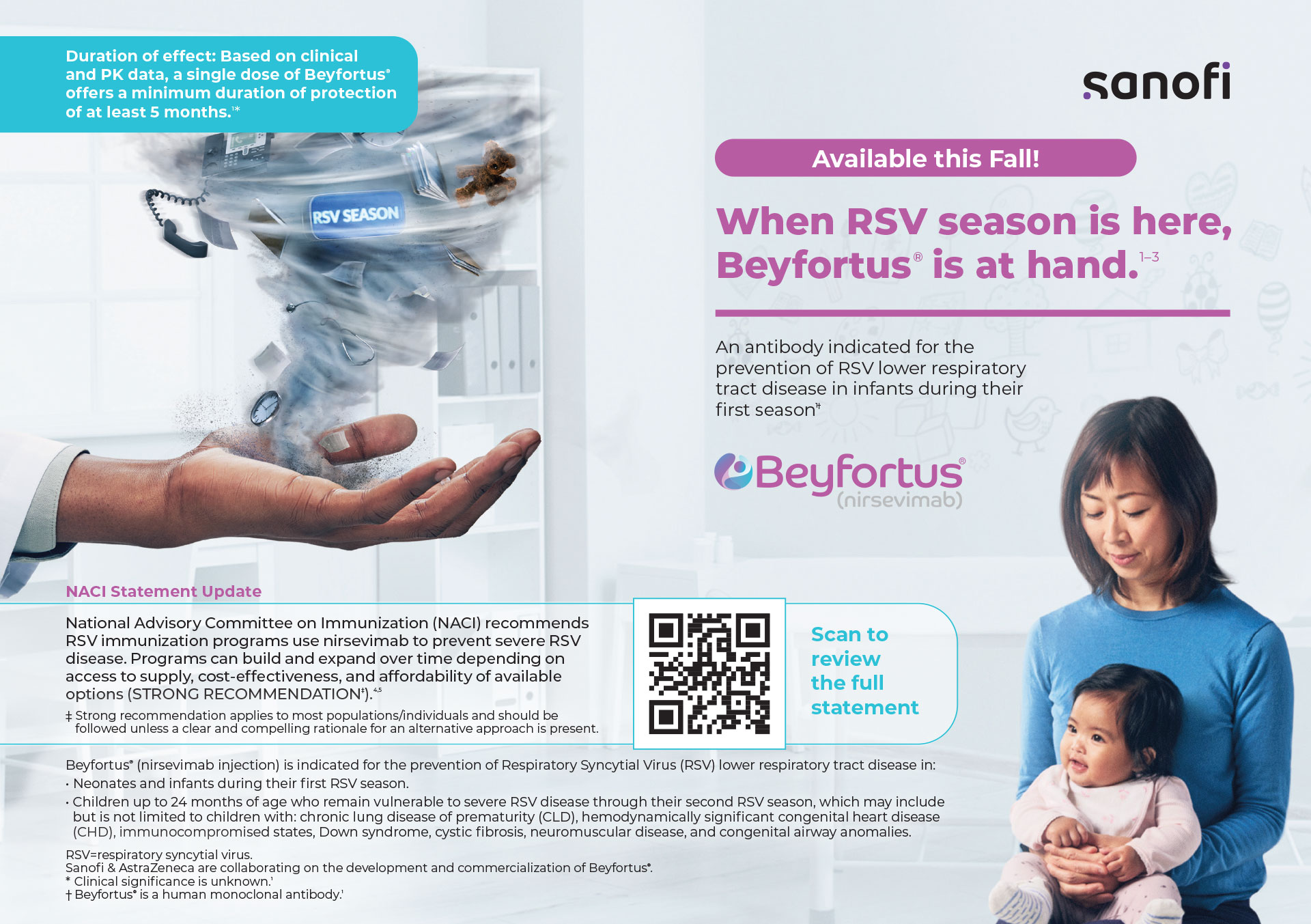Beyfortus® is an antibody indicated for the prevention of RSV lower respiratory tract disease in infants during their first season.1†