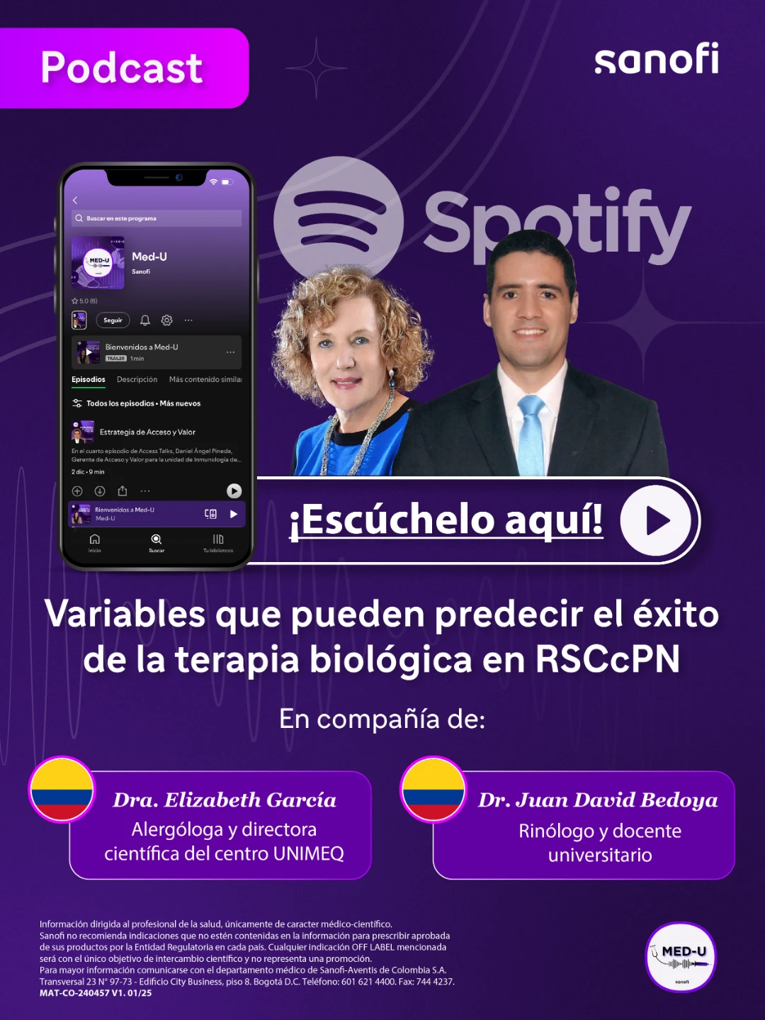 En este episodio exploramos un tema clave en el tratamiento de la rinosinusitis crónica con pólipos nasales: las variables que pueden predecir el éxito en la RSCcPN. Desde la perspectiva de otorrinolaringología y alergología analizamos los factores clave que podrían marcar la diferencia en el tratamiento. ¡No se lo pierdan!