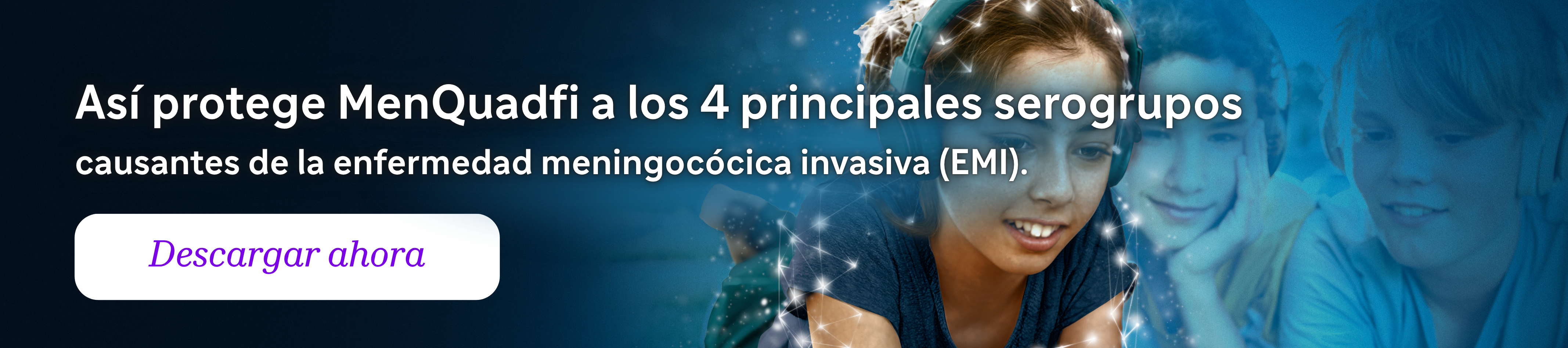 La única vacuna MenACWY con protección avanzada para derrotar la carga de la enfermedad meningocócica invasiva causada por Neisseria meningitidis, como la mortalidad, la amputación, la pérdida de audición y otras secuelas a largo plazo. MenQuadfi está indicado para la inmunicación activa de inviduos a partir de 12 meses de edad.