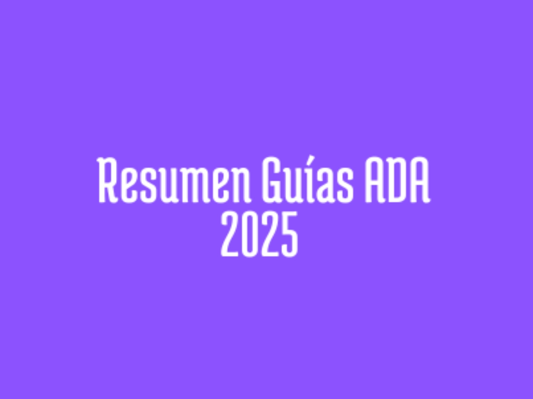 Resumen Guías ADA 2025 la American Diabetes Association (ADA) publica una guía con las actualizaciones de los estándares de atención médica en diabetes, en este apartado resumimos los principales cambios con respecto a la guía del año 2024.