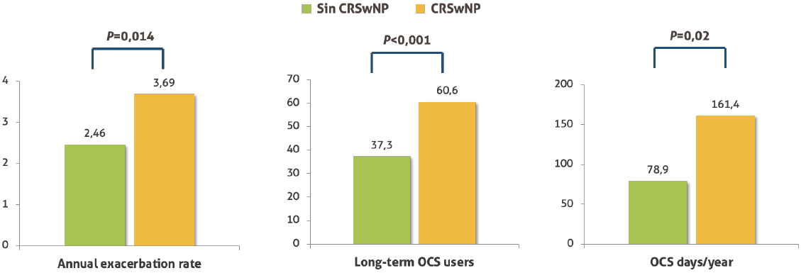 CRSwNP= rinosinusitis crónica con póloposos nasales.