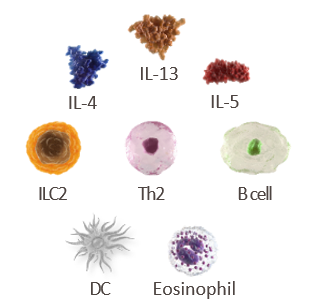 Las enfermedades inflamatorias de las vías respiratorias son impulsadas con frecuencia por mediadores y células inflamatorias de tipo 2 comunes 1-4