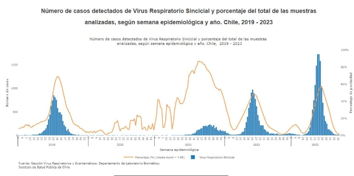La circulación de VSR generalmente comienza entre abril y mayo en el hemisferio sur, con un pico de casos reportado en julio y persiste durante 5 a 6 meses.30