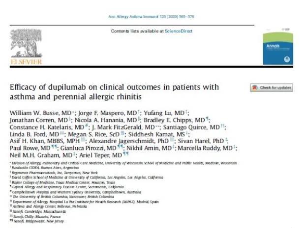 Efficacy of dupilumab on clinical outcomes in patients with asthma and perennial allergic rhinitis