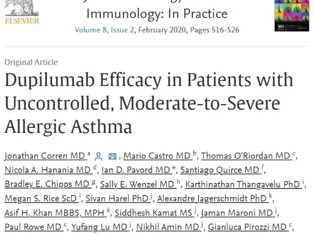 Dupilumab Efficacy in Patients with Uncontrolled, Moderate-to-Severe Allergic Asthma - Corren J, Castro M, et al; J Allergy Clin Immunol Pract Volume 8, no. 2, February 2020;516-526