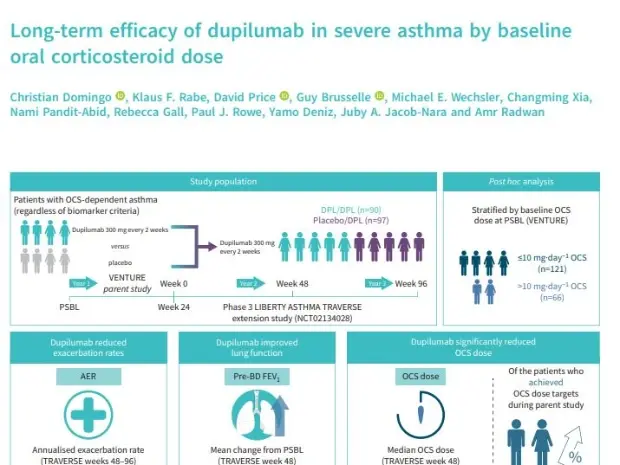 Domingo C, Rabe KF, Price D, et al. Long-term efficacy of dupilumab in severe asthma by baseline oral corticosteroid dose. ERJ Open Res 2023; in press (https://doi.org/10.1183/23120541.00056-2023)