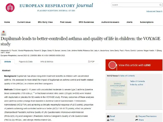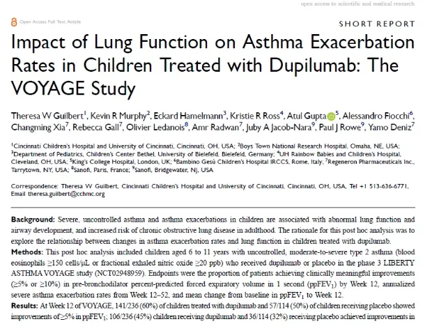 Dupilumab leads to better-controlled asthma and quality of life in children: the VOYAGE study