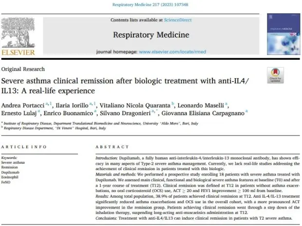 Severe asthma clinical remission after biologic treatment with anti-IL4/