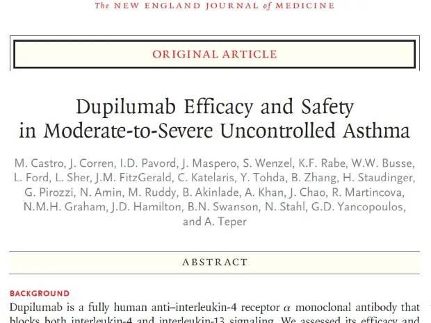 Mario Castro, M.D., Jonathan Corren, M.D., Ian D. Pavord, M.D., et al: N Engl J Med 2018; 378:2486-2496. DOI: 10.1056/NEJMoa1804092