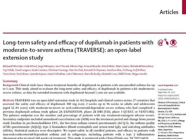 Long-term safety and efficacy of dupilumab in patients with moderate-to-severe asthma (TRAVERSE): an open-label extension study