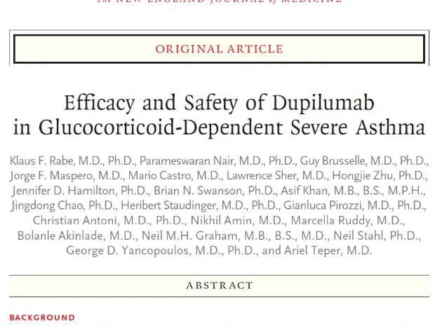 Efficacy and Safety of Dupilumab in Glucocorticoid-Dependent Severe Asthma. Rabe KF, et al; N Engl J Med 2018; 378:2475-2485 DOI: 10.1056/NEJMoa1804093