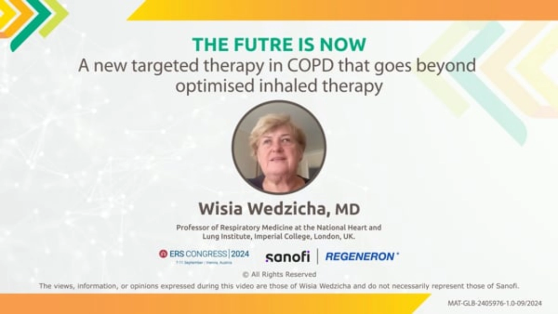 Discover the therapeutic potential of dupilumab in COPD - the first-ever targeted therapy and first new treatment approach for this disease in more than a decade. Recently approved in the EU for COPD patients with elevated blood eosinophils uncontrolled on optimised inhaled therapy, dupilumab targets key cytokines of type 2 inflammation.