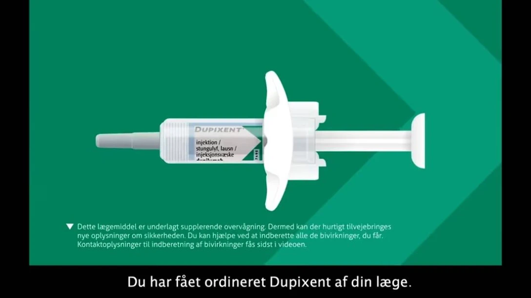En film som viser, hvorledes du injicerer Dupixent pen eller sprøjte.