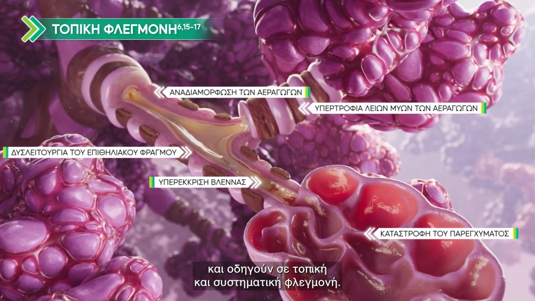 Παραμένει συμπτωματικός παρά τη βέλτιστη εισπνεόμενη θεραπείαa: Δύσπνοια, βήχας και βλέννη
