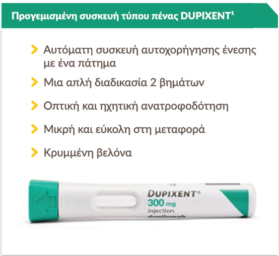 Το DUPIXENT προορίζεται για χρήση υπό την καθοδήγηση επαγγελματία υγείας1