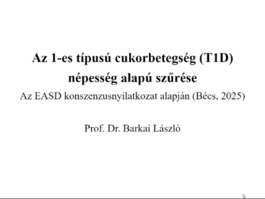 Prof. Dr. Barkai László Az 1-es típusú cukorbetegség (T1D) népesség alapú szűrése - Az EASD konszenzusnyilatkozat alapján (Bécs, 2025)