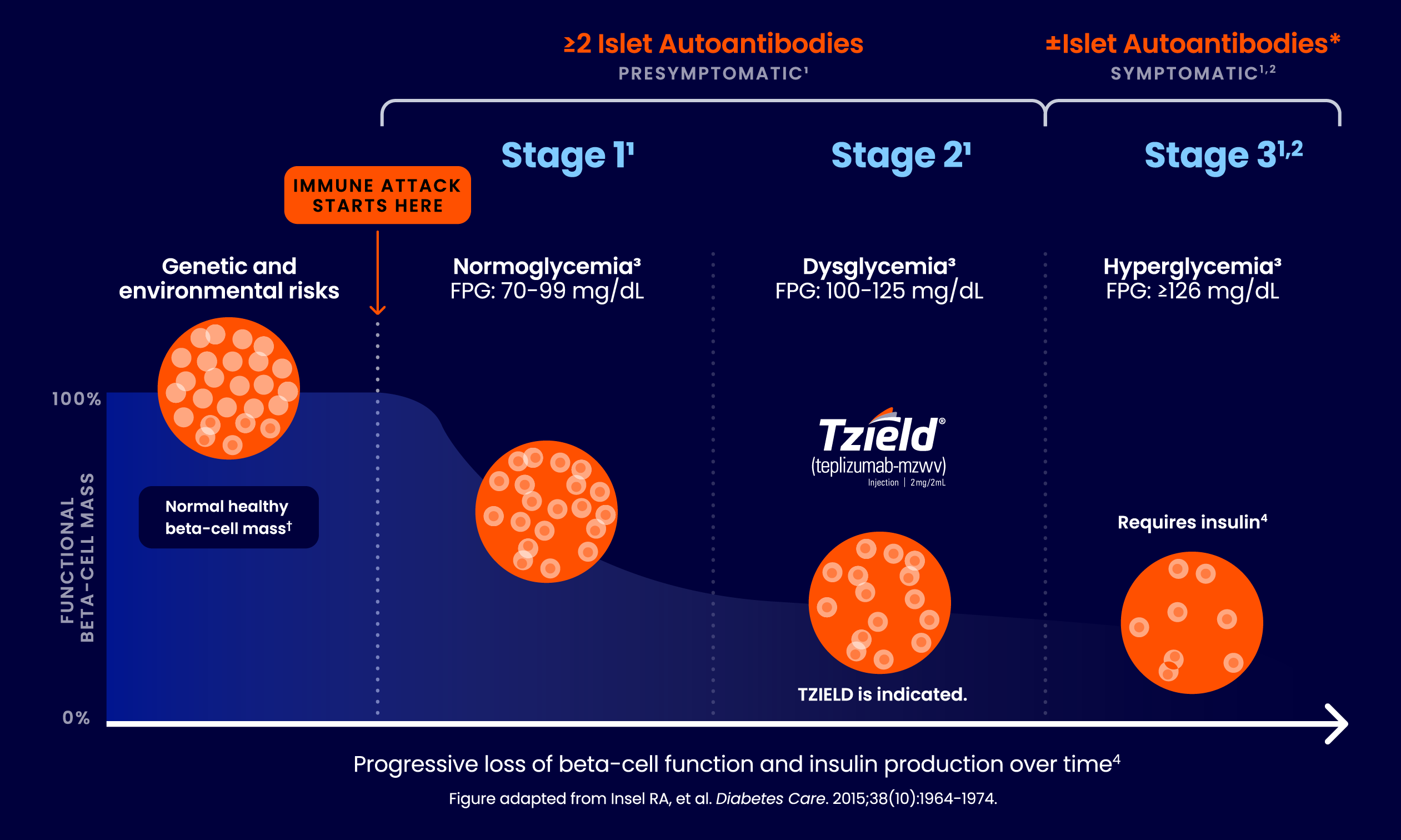 Insel RA, Dunne JL, Atkinson MA, et al. Staging presymptomatic type 1 diabetes: A scientific statement of JDRF, the Endocrine Society, and the American Diabetes Association. Diabetes Care. 2015;38(10):1964-1974.