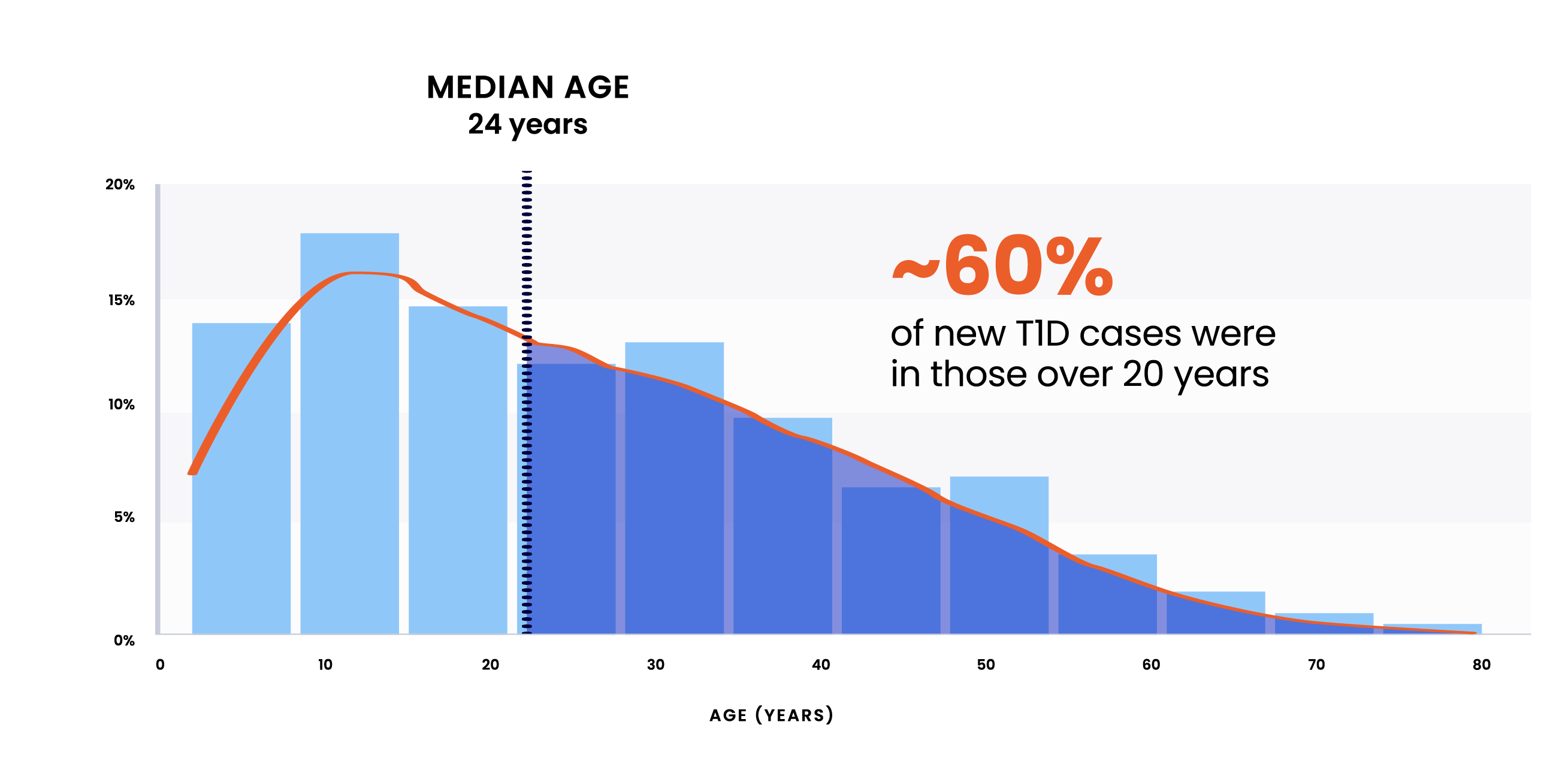 FACT: ~60% of new T1D cases were in those over 20 years of age.8