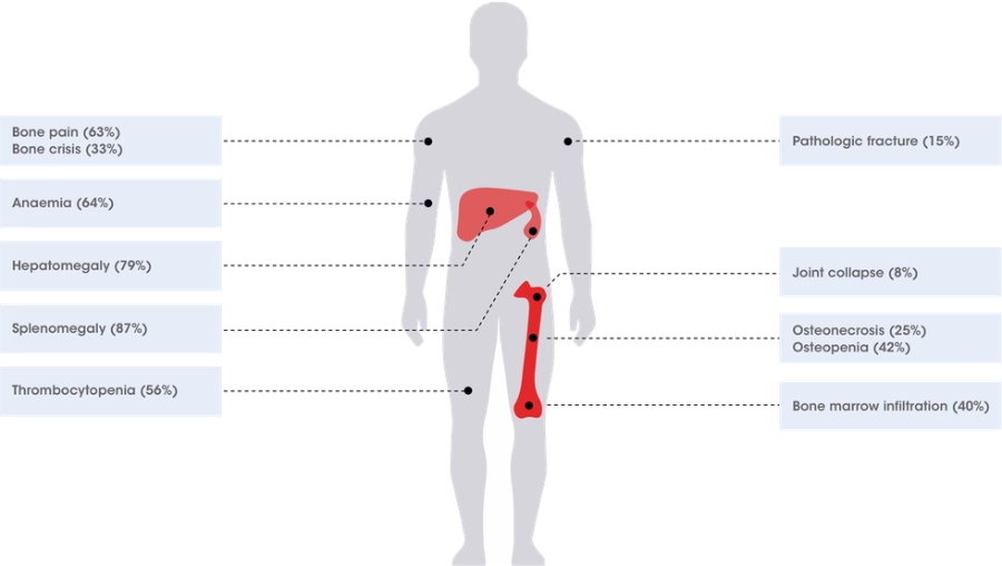 Gaucher symptoms prevalence data from Charrow J et al. Arch Intern Med. 2000. 160:2835–2843.3