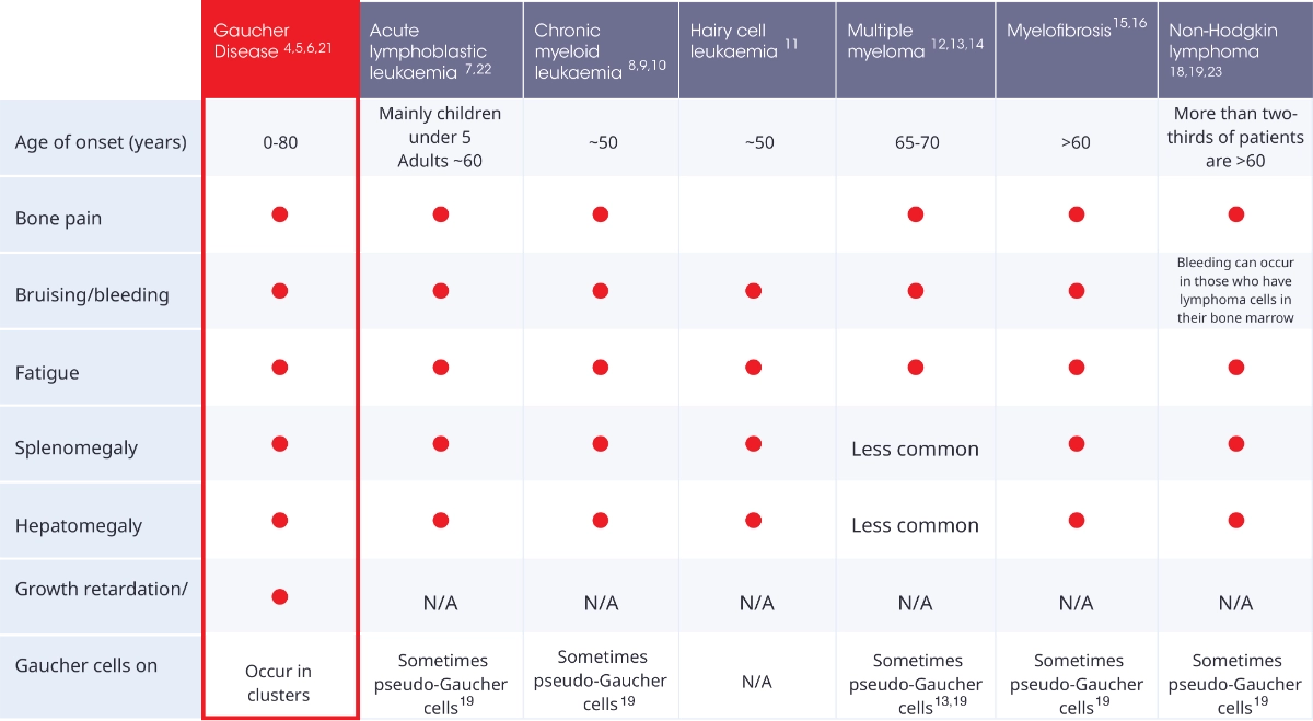 The signs of Gaucher disease may look similar to other haematological malignancies. Rule out Gaucher disease in patients who present with these symptoms.