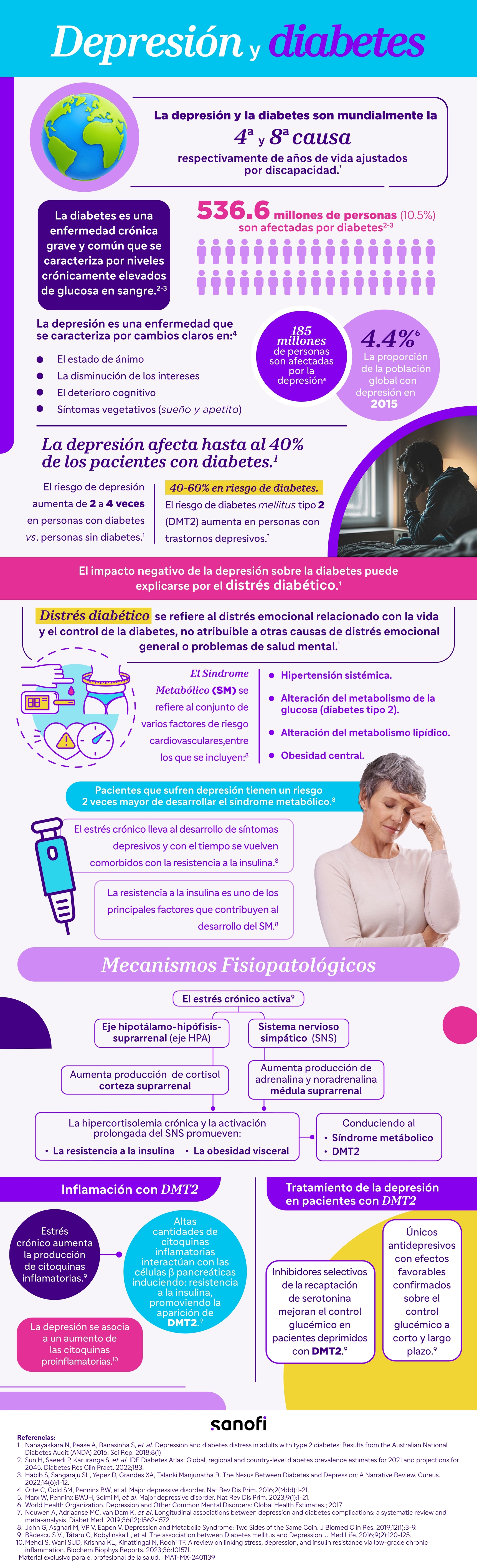 La depresión y la diabetes son mundialmente la 4ª y 8ª causa respectivamente de años de vida ajustados por discapacidad.1