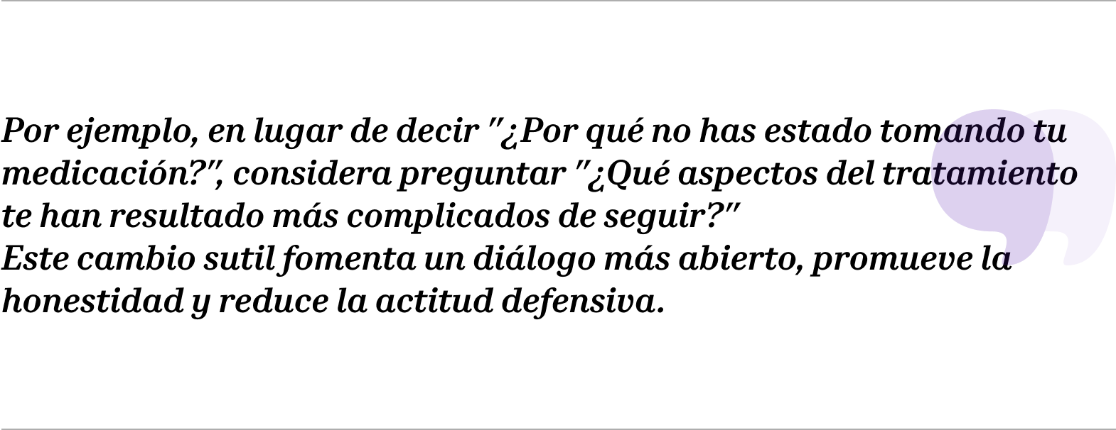 Esto puede llevar a conversaciones difíciles, que desmotiven y que puedan hacer sentir a los pacientes desconectados de su tratamiento.
