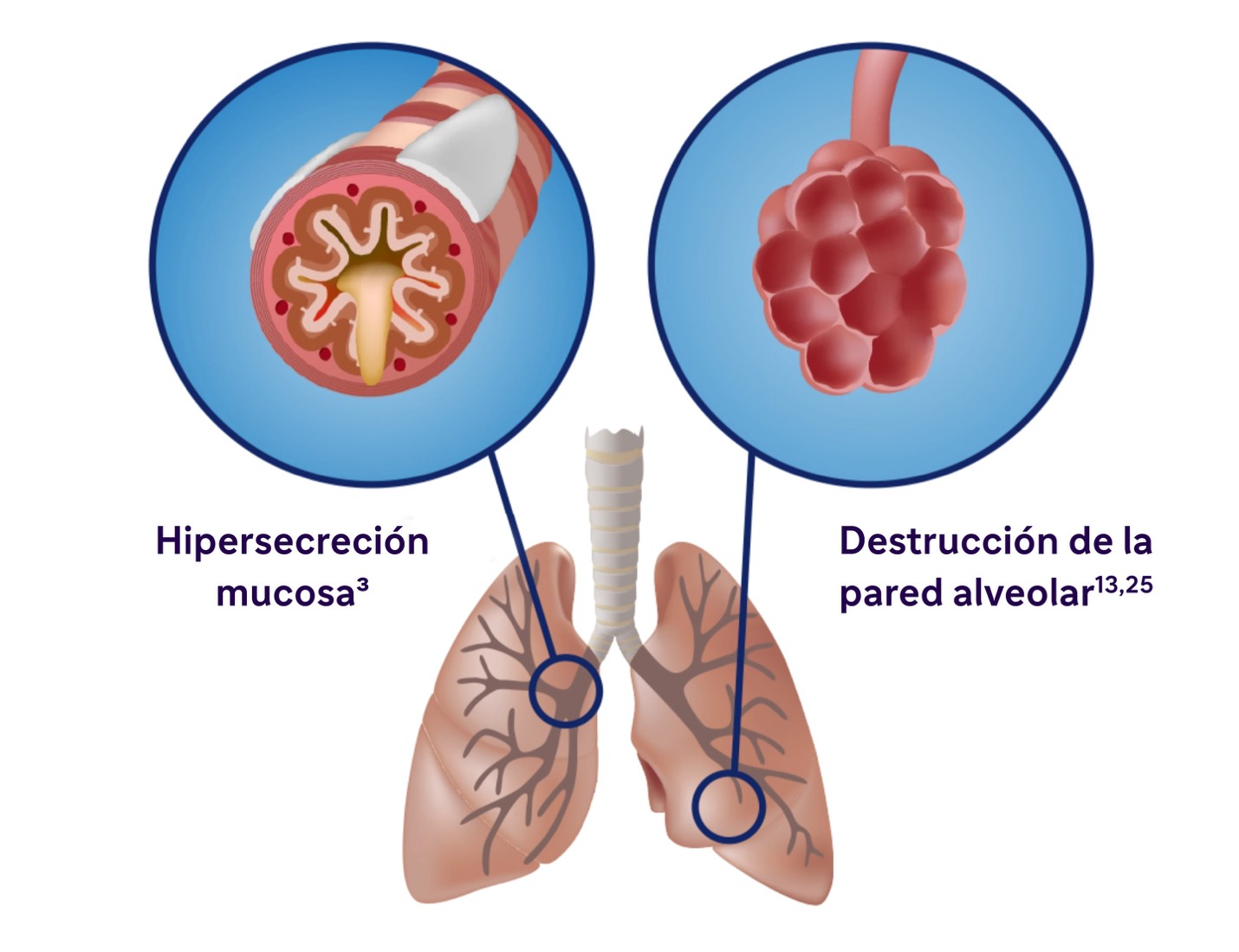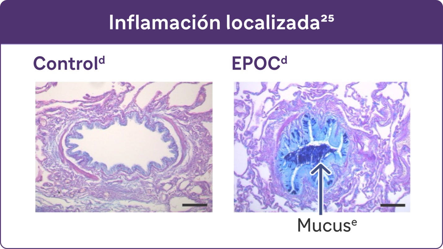 - Los estudios han identificado una relación entre la inflamación y la hipersecreción de moco en afecciones respiratorias como la EPOC25