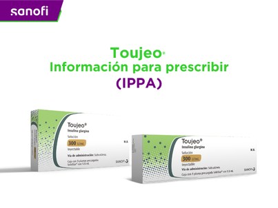 TOUJEO® es un análogo de insulina basal, indicada para el tratamiento de diabetes mellitus tipo 1 y tipo 2 en adultos, adolescentes y niños mayores de 6 años. Es una formulación de insulina glargina de liberación sostenida, tres veces más concentrada (300 Unidades/mL) que las insulinas glargina convencionales.