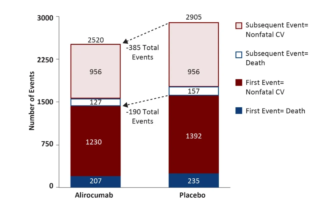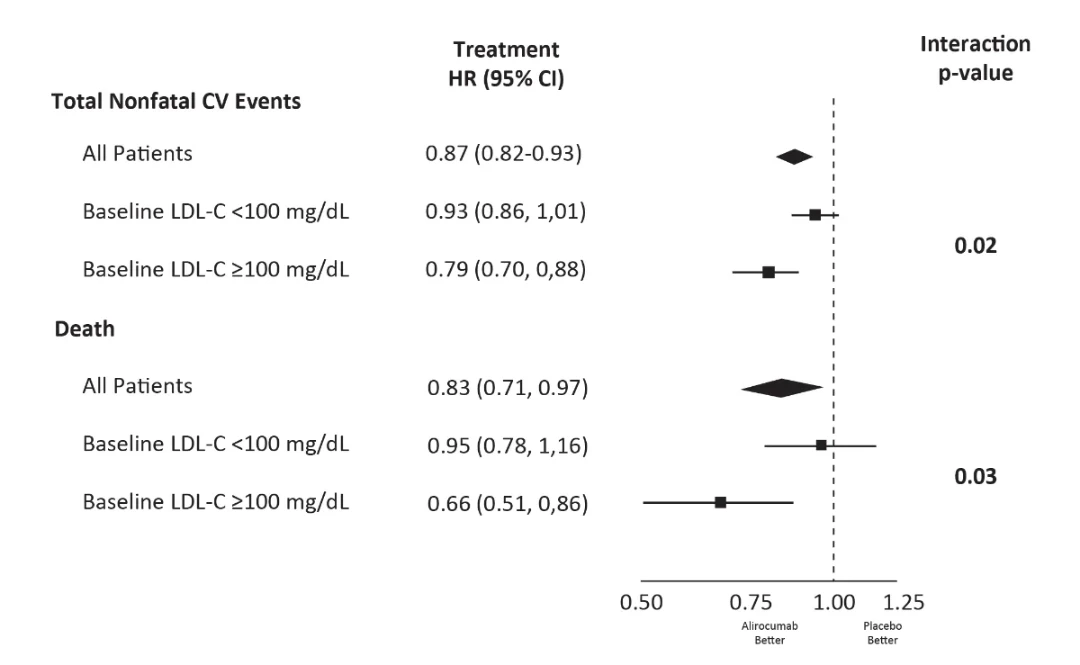Higher baseline LDL-C associated with greater reduction of total events with Alirocumab