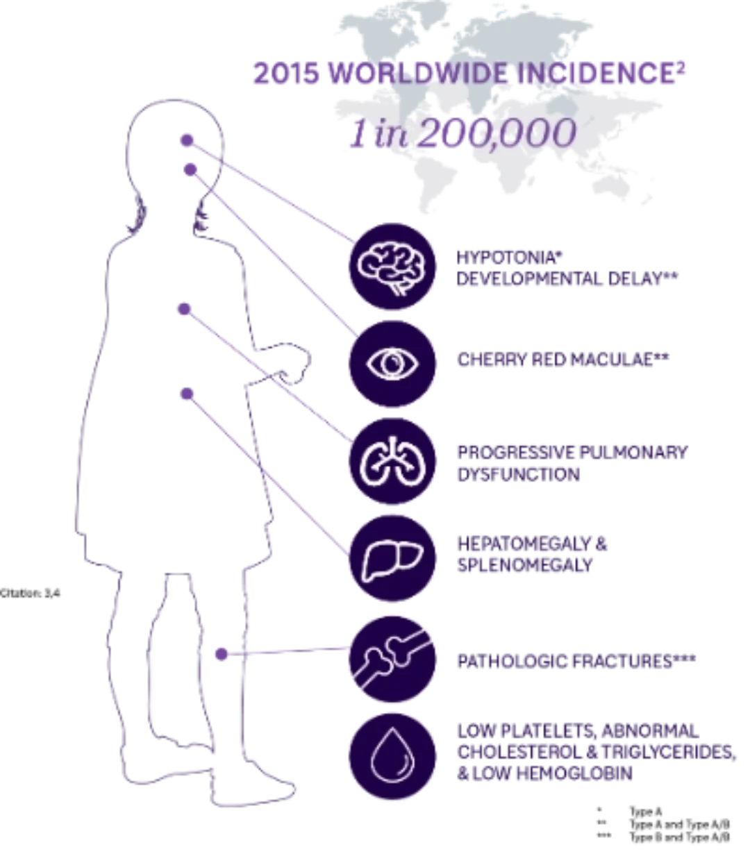 - Wasserstein MP and Schuchman EH. Acid Sphingomyelinase Deficiency. 2006 Dec 7 [Updated 2015 Jun 18]. GeneReviews® [Internet]. Available from: https:// www.ncbi.nlm.nih.gov/books/NBK1370/. Accessed July 2019