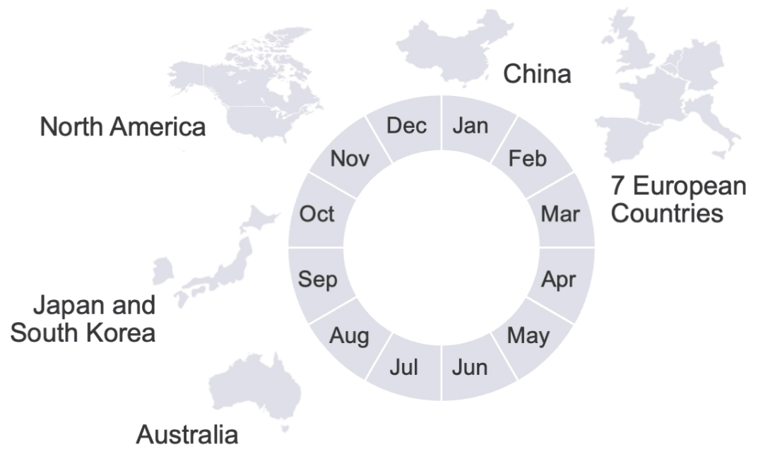 RSV Is Seasonal, With Peak Incidence Varying by Region1,2