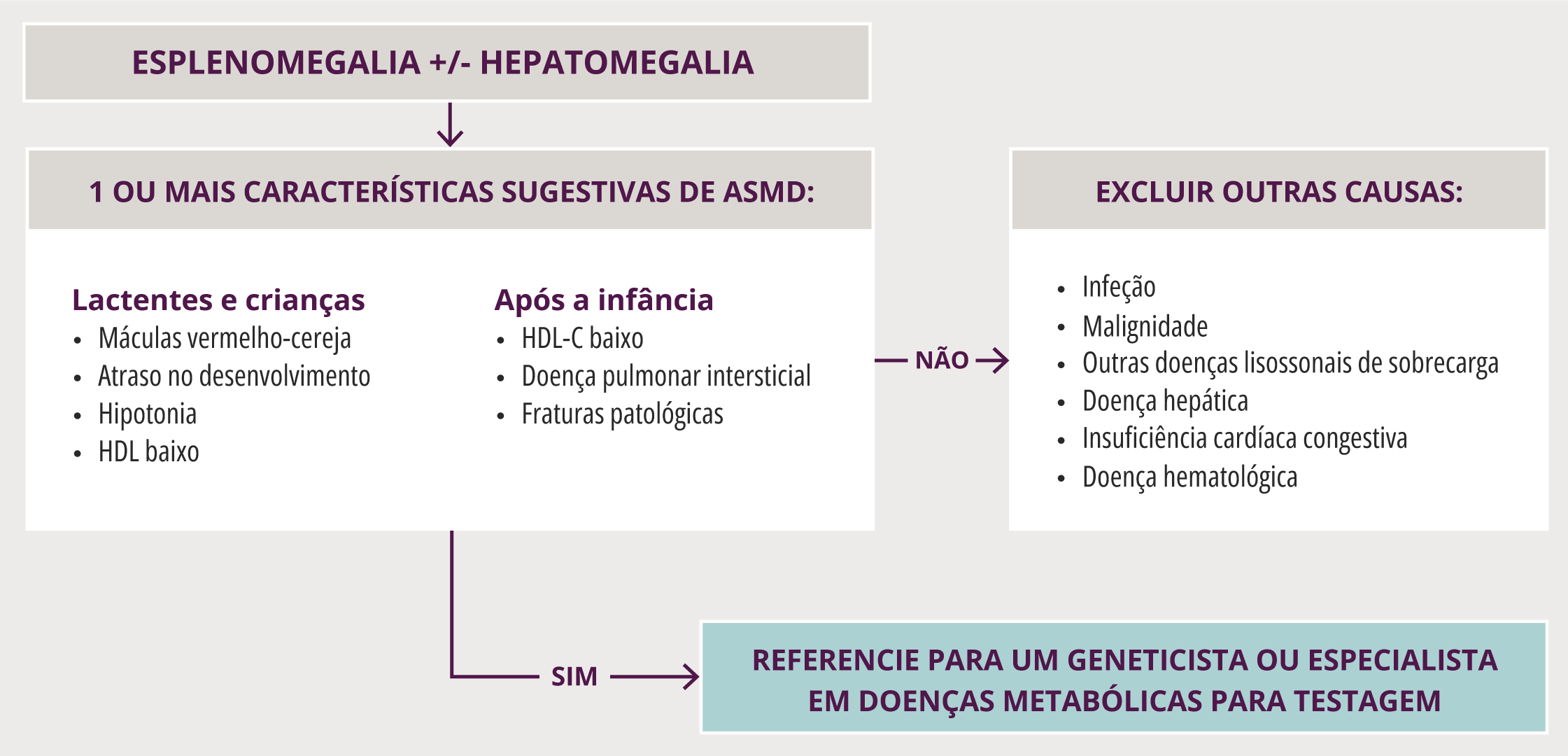 Estão disponíveis se suspeitar de deficiência em esfingomielinase ácida (acid sphingomyelinase deficiency, ASMD)1