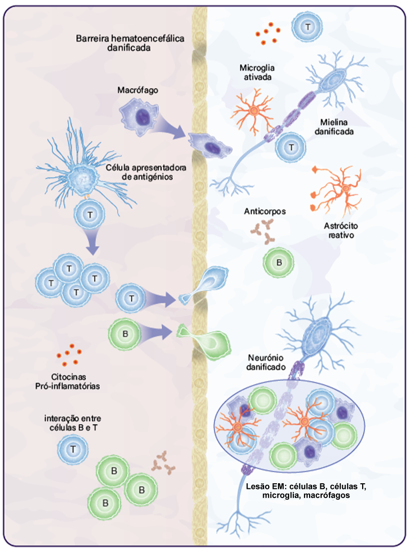 Este processo é caracterizado pela migração de células do sistema imunitário adaptativo (linfócitos B e T) e de macrófagos para o SNC.