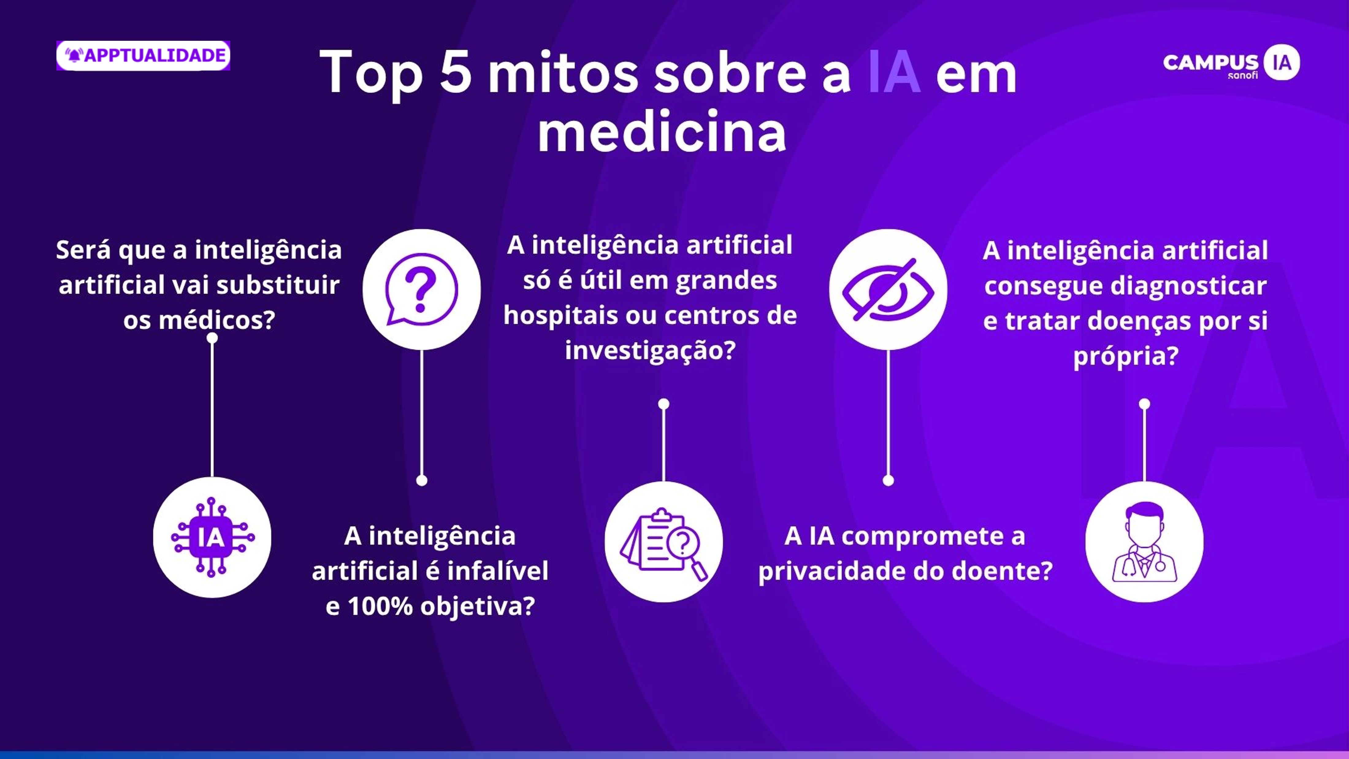 Os recursos e funcionalidades mencionados neste site não foram desenvolvidos, financiados, promovidos ou validados pela Sanofi. A Sanofi recolhe-os e descreve-os no Campus IA apenas para fins ilustrativos e não é responsável pela precisão ou integridade das informações resultantes do seu uso ou das opiniões expressas sobre eles. É responsabilidade do profissional de saúde garantir o uso e monitoramento adequados dos resultados obtidos através da inteligência artificial, bem como verificar a veracidade das informações e a interpretação das opiniões dos especialistas. A inteligência artificial não deve substituir o julgamento humano do profissional de saúde, mas sim complementar o exercício da sua profissão.