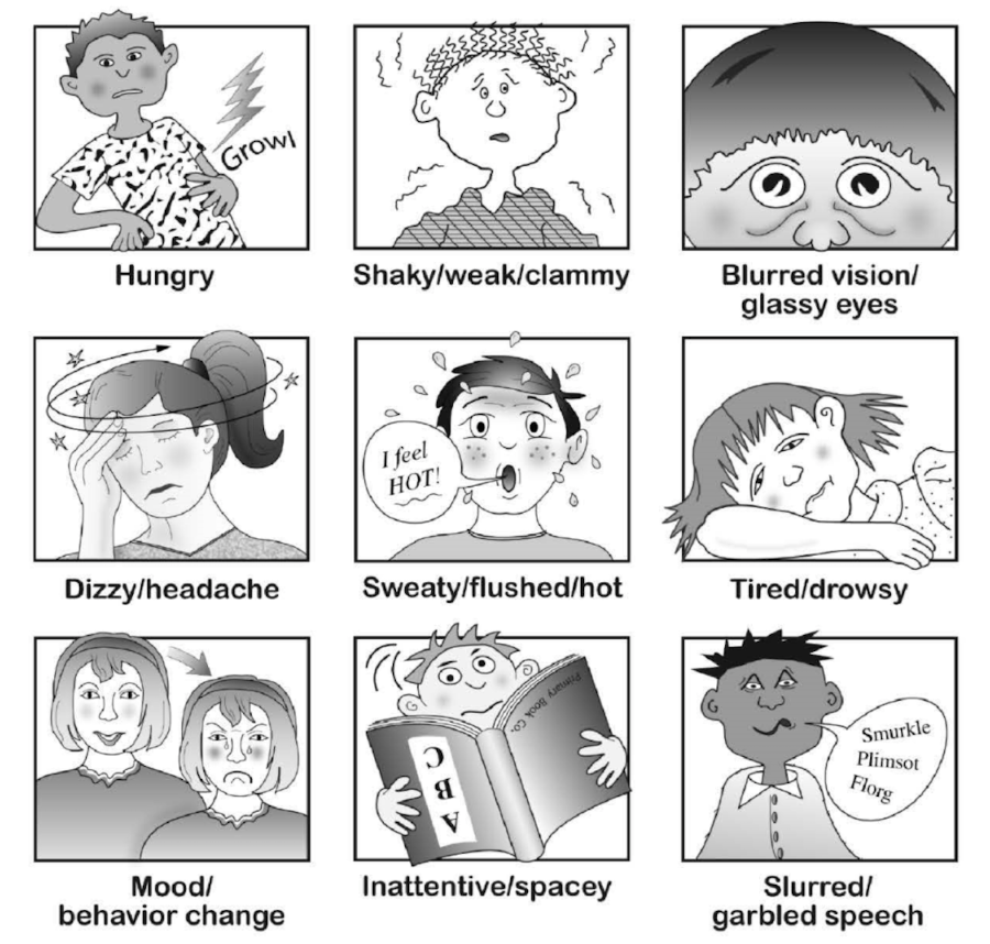 Hypoglycemia (low blood glucose) happens when blood glucose drops below optimal levels.
