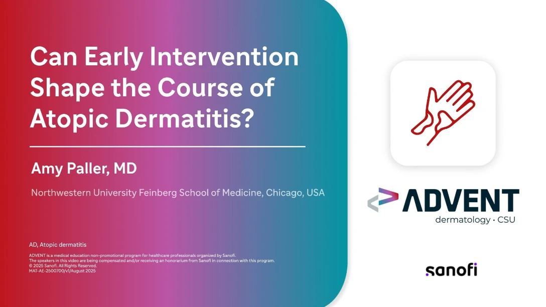 The soundbite recording captures Dr. Paller's discussion examining whether early therapeutic intervention can influence the natural course of atopic dermatitis. The presentation explores the potential for timely treatment approaches to modify disease trajectory.