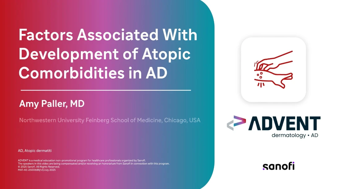 The soundbite recording captures Dr. Paller's discussion on factors that contribute to the development of atopic comorbidities in patients with atopic dermatitis. The presentation examines the relationship between AD and associated atopic conditions.