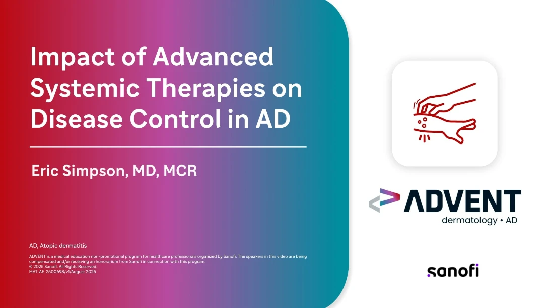 This educational video features Dr. Eric Simpson's presentation on the Impact of Advanced Systemic Therapies on Disease Control in AD