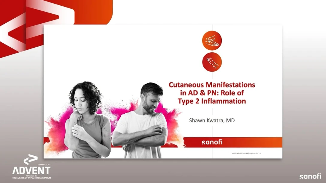 This educational video focuses on the role of type 2 inflammation in atopic dermatitis (AD) and prurigo nodularis (PN), examining how this inflammatory process contributes to cutaneous manifestations in both conditions.