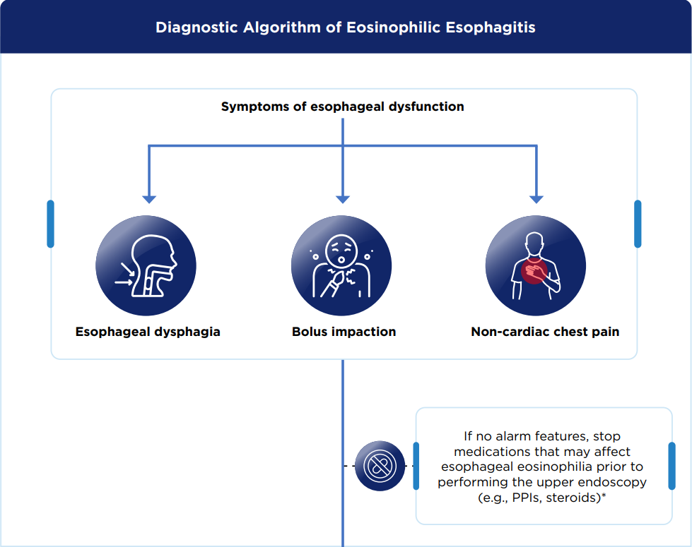 *Endoscopy should not be delayed when dysphagia, anemia, and/or weight loss are present. In case of non-diagnostic esophageal