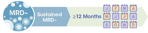 Achieving MRD negativity is associated with better outcomes such as longer PFS and OS compared with patients who are MRD positive6,7