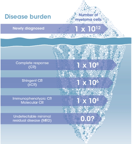 MRD is the low level of malignant cells that persist even after a complete response with myeloma treatment1