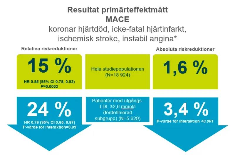 - koronar hjärtdöd, icke-fatal hjärtinfarkt, ischemisk stroke, instabil angina (som kräver sjukhusvård och med med positiv koronarangiografi)