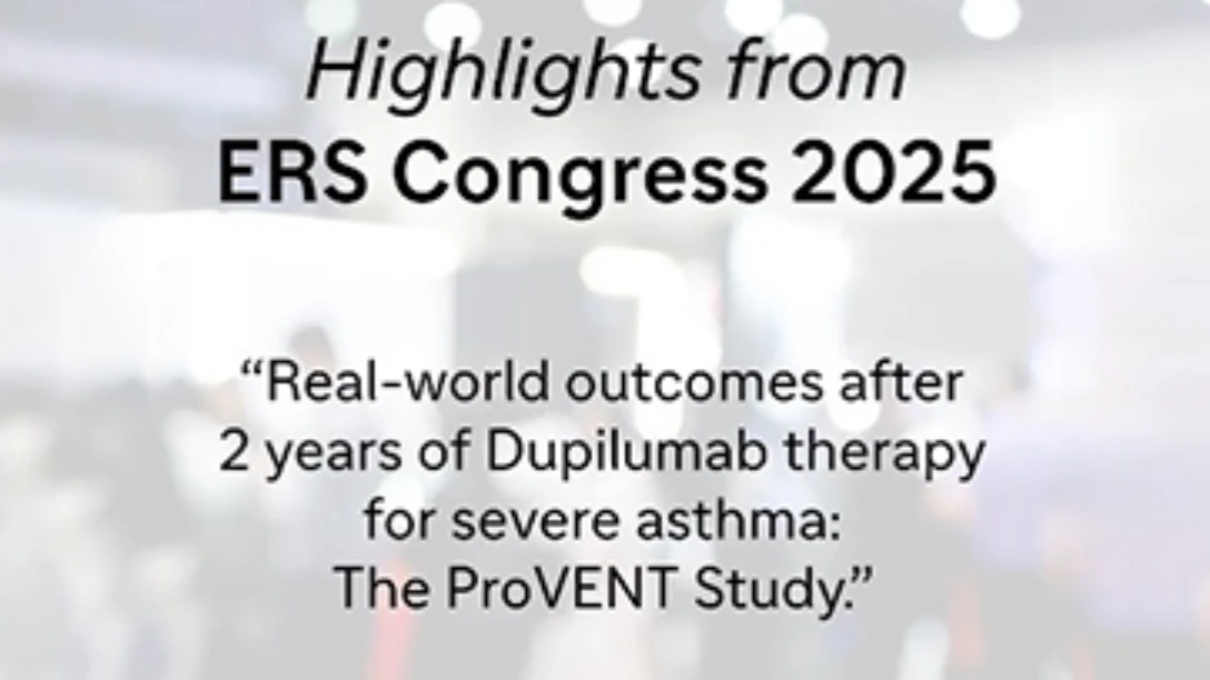 Tarek Bass, Medical Advisor at Sanofi, presents the ProVENT study—showing Dupilumab’s sustained effectiveness over two years in severe asthma, with improved control, lung function, and remission.