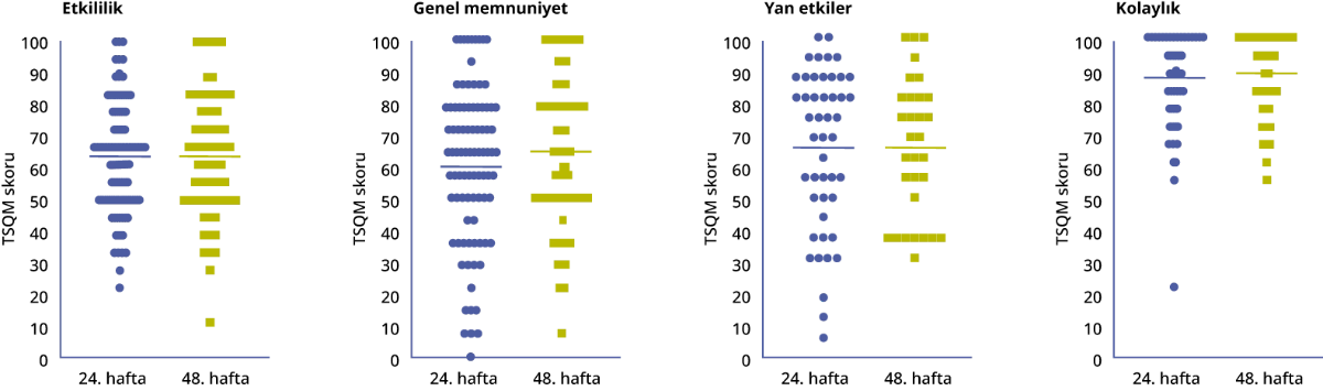 Başlangıç. 24. ve 48. haftada tedavi memnuniyeti (TSQM, V1.4)